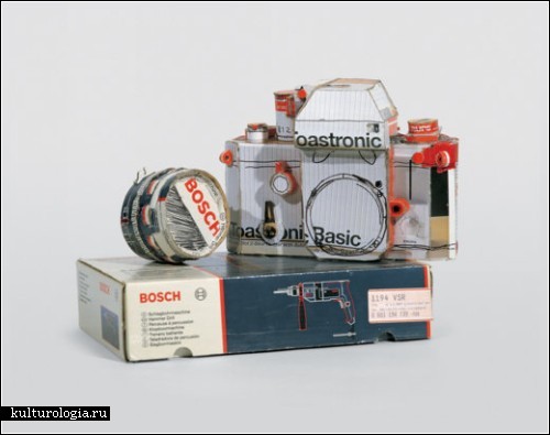 Tom Sachs соединяет вместе функциональные детальки из разобранных материалов, которые он переделывает в новые предметы с новым функциональным значением. Он создает свои инженерные и дизайнерские шедевры в своеобразном стиле из простого материала: дерева, клейкой ленты, пластилина, фанеры, электронных деталей. Камеры демонстрируют увеличивающуюся склонность покупателей к точной технологии, а также интерес в функциональном, практическом и социо-экономическом значении предметов.