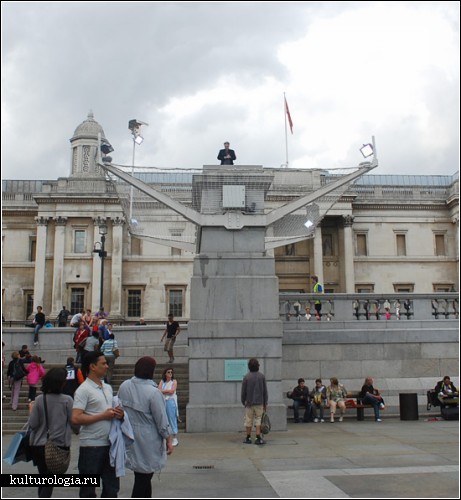 Каждый час, 24 часа в день, в течение 100 дней без перерыва, 2400 разных людей будут стоять на четвертом постаменте, который был построен вместе с тремя другими на северо-западном углу площади в 1841 году. Изначально там планировалось водрузить конную статую, но по финансовым причинам постамент так и остался пуст, на котором время от времени появляются разнообразные временные скульптуры и инсталляции.