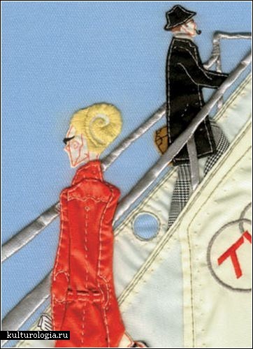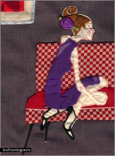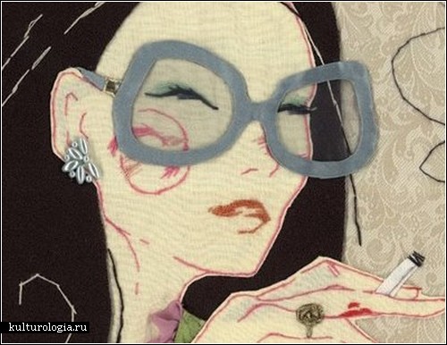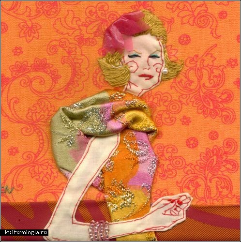 ткани с помощью нитки и иголки, причем делает так искусно, что ее