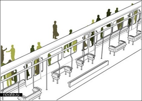 большим пассажиропотоком) в вагонах убрали крайние сиденья,