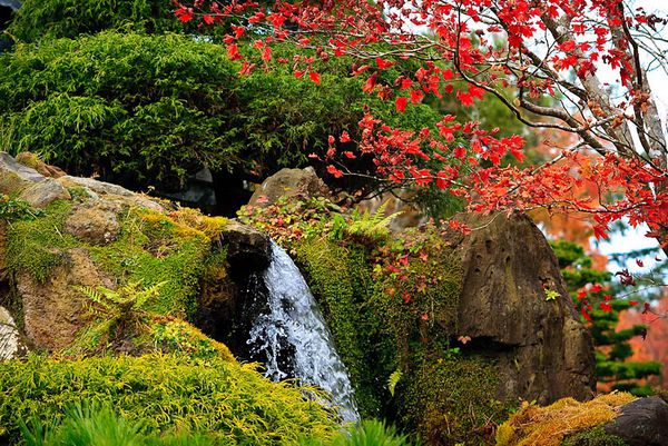 9. Как и в любом японском саду здесь уделяется особое внимание природным элементам, камням, скалам, ручьям, деревьям.