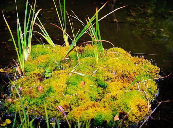 миниатюрную горную сцену с водопадом и островком, окруженным гравиевой