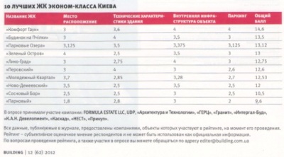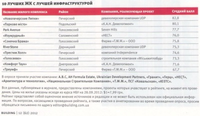 недвижимости, но наиболее авторитетным можно считать рейтинг киевской недвижимости от специализированного журнала Building. Журнал Building, так же не