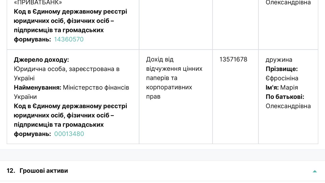 Как стало известно в ходе изучения электронной декларации ее мужа, главы Национальной комисси фондового ринка и ценных бумаг (НКФРЦБ) Тимура Хромаева, за 2018 и 2019 гг., Мария Ефросинина вполне успешно освоила азы финансовой политики и за 2 года заработала на купле/продаже облигаций внутреннего гос займа(ОВГЗ) почти миллион долларов США. И почти 100 тыс долларов на выплате процентов по ним.